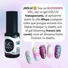 nEl gel blooming es un gel transparente que crea un efecto mágico en la uña cuando se aplica una capa sobre la uña, diluye cualquiercolor que pongas encima. Es prfecto para crear diseños marmoleados.